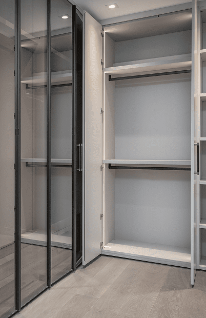 We help interior designers bring their vision to life with custom wardrobe systems and modular closets tailored to any space. Partnering closely, we refine every detail – from smart accessories to drawer organization and integrated lighting – turning ideas into spaces filled with character and style. Our Italian design shapes timeless environments where function and imagination coexist beautifully.