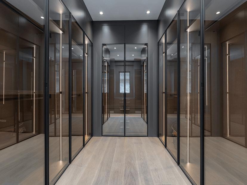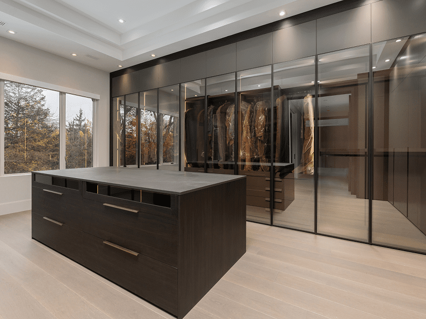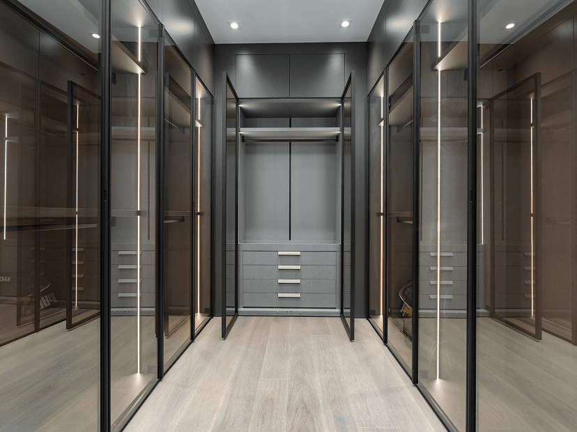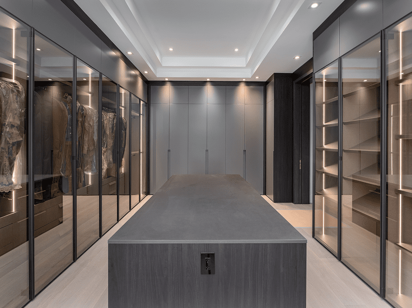 A walk-in closet transforms storage into a luxury experience, blending Italian design, space, and timeless elegance.