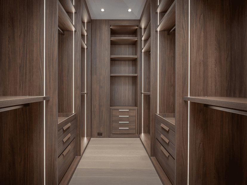 Our custom closets are crafted with wood veneers,